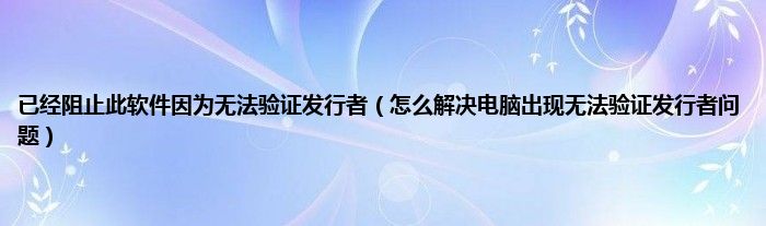 已经阻止此软件因为无法验证发行者(怎么解决电脑出现无法验证发行者问题)