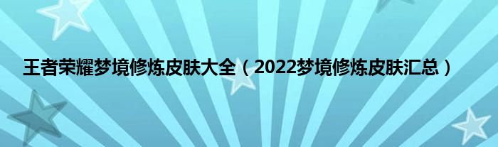 大家好,综合小编来为大家讲解下王者荣耀梦境修炼皮肤大全,2022梦境修炼皮肤汇总这个很多人还不知道,现在让我们一起来看看吧!