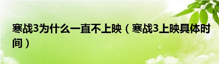 最佳答案关于寒战3为什么一直不上映,寒战3上映具体时间这个很多人还不知道,今天菲菲来为大家解答以上的问题,现在让我们一起来看看吧!1、《寒战》是由安乐影片有限公司、万诱引力电影公司、银都机构有限公司、Stars Shine Blue Sea Productions联合制作的一部动作剧情片于2012年11月8日在中国首映。2、该...