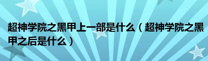 关于超神学院之黑甲上一部是什么,超神学院之黑甲之后是什么这个很多人还不知道,今天菲菲来为大家解答以上的问题,现在让我们一起来看看吧!