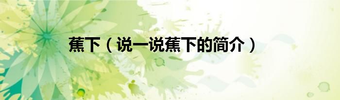 蕉下(说一说蕉下的简介)