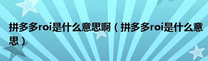拼多多roi是什么意思啊(拼多多roi是什么意思)