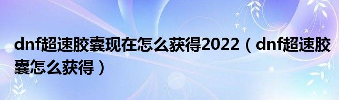 关于dnf超速胶囊现在怎么获得2022,dnf超速胶囊怎么获得这个很多人还不知道,今天菲菲来为大家解答以上的问题,现在让我们一起来看看吧!
