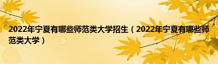 2022年宁夏有哪些师范类大学招生(2022年宁夏有哪些师范类大学)