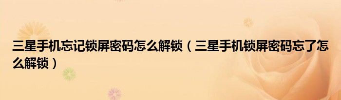 关于三星手机忘记锁屏密码怎么解锁,三星手机锁屏密码忘了怎么解锁这个很多人还不知道,今天菲菲来为大家解答以上的问题,现在让我们一起来看看吧!