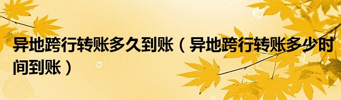 关于异地跨行转账多久到账,异地跨行转账多少时间到账这个很多人还不知道,今天菲菲来为大家解答以上的问题,现在让我们一起来看看吧!