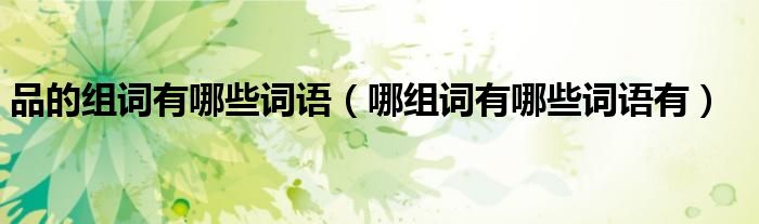 关于品的组词有哪些词语,哪组词有哪些词语有这个很多人还不知道,今天菲菲来为大家解答以上的问题,现在让我们一起来看看吧!