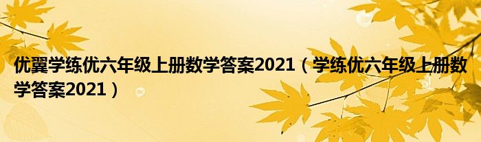 优翼学练优六年级上册数学答案2021(学练优六年级上册数学答案2021)