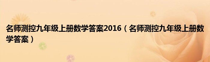 名师测控九年级上册数学答案2016(名师测控九年级上册数学答案)