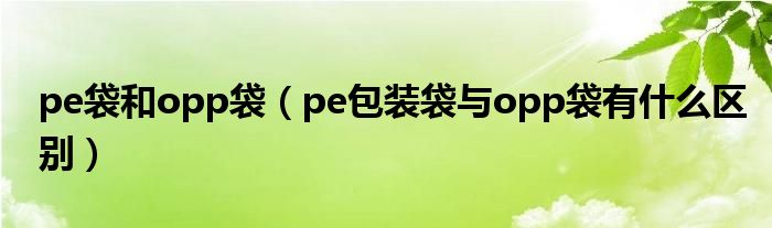 关于pe袋和opp袋,pe包装袋与opp袋有什么区别这个很多人还不知道,今天菲菲来为大家解答以上的问题,现在让我们一起来看看吧!