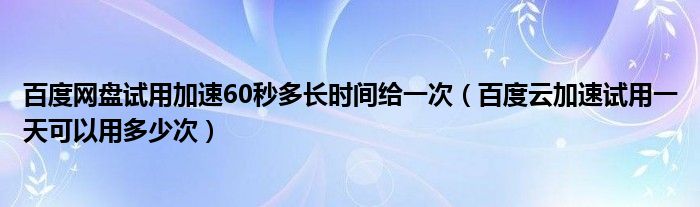 关于百度网盘试用加速60秒多长时间给一次,百度云加速试用一天可以用多少次这个很多人还不知道,今天菲菲来为大家解答以上的问题,现在让我们一起来看看吧!