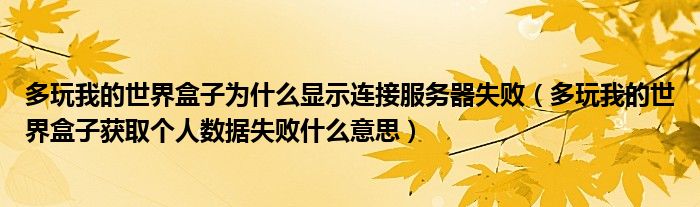 大家好,小华来为大家解答以上的问题。多玩我的世界盒子为什么显示连接服务器失败,多玩我的世界盒子获取个人数据失败什么意思这个很多人还不知道,现在让我们一起来看看吧!