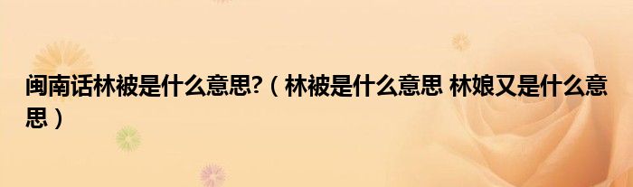 大家好,小联来为大家解答以上的问题。闽南话林被是什么意思?,林被是什么意思 林娘又是什么意思这个很多人还不知道,现在让我们一起来看看吧!