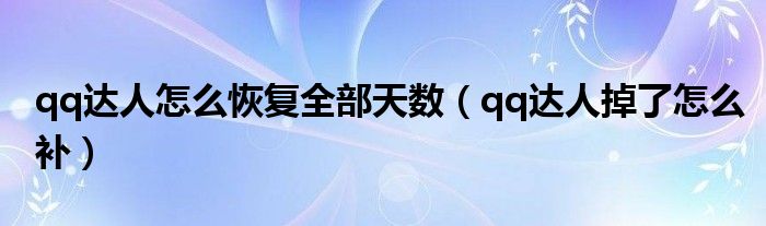 关于qq达人怎么恢复全部天数,qq达人掉了怎么补这个很多人还不知道,今天菲菲来为大家解答以上的问题,现在让我们一起来看看吧!