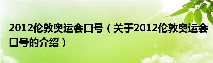 2012伦敦奥运会口号(关于2012伦敦奥运会口号的介绍)