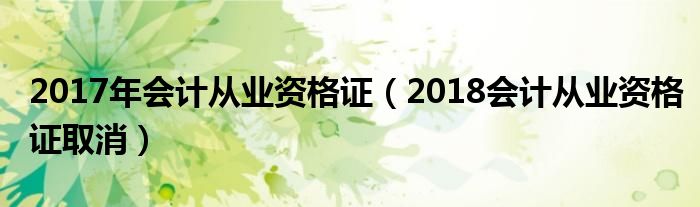 2017年会计从业资格证(2018会计从业资格证取消)