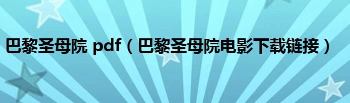 巴黎圣母院 pdf(巴黎圣母院电影下载链接)