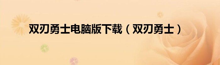 大家好,我是小科,我来为大家解答以上问题。双刃勇士电脑版下载,双刃勇士很多人还不知道,现在让我们一起来看看吧!