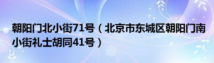 大家好,小联来为大家解答以上的问题。朝阳门北小街71号,北京市东城区朝阳门南小街礼士胡同41号这个很多人还不知道,现在让我们一起来看看吧!
