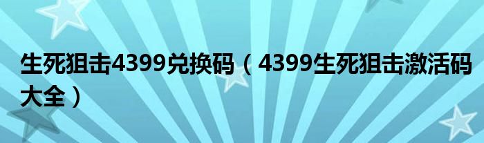 生死狙击4399兑换码(4399生死狙击激活码大全)