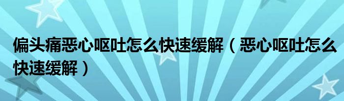 大家好,乐天来为大家解答以下的问题,偏头痛恶心呕吐怎么快速缓解,恶心呕吐怎么快速缓解很多人还不知道,现在让我们一起来看看吧!