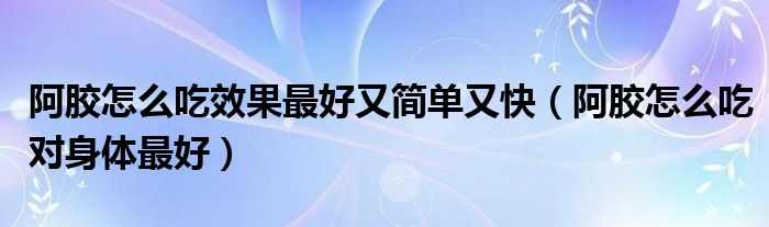 大家好,乐天来为大家解答以下的问题,阿胶怎么吃效果最好又简单又快,阿胶怎么吃对身体最好很多人还不知道,现在让我们一起来看看吧!