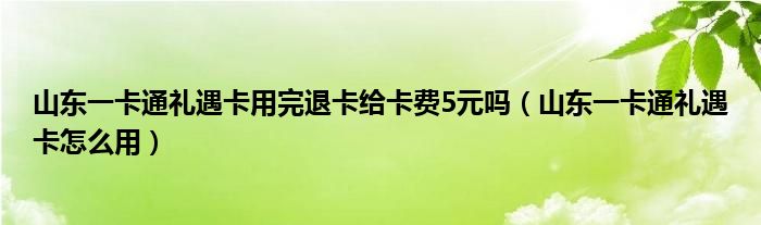 大家好,我是小科,我来为大家解答以上问题。山东一卡通礼遇卡用完退卡给卡费5元吗,山东一卡通礼遇卡怎么用很多人还不知道,现在让我们一起来看看吧!