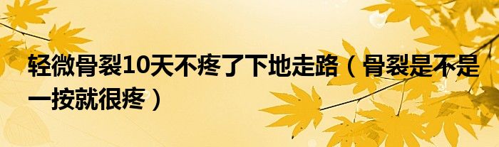 大家好,我是小科,我来为大家解答以上问题。轻微骨裂10天不疼了下地走路,骨裂是不是一按就很疼很多人还不知道,现在让我们一起来看看吧!