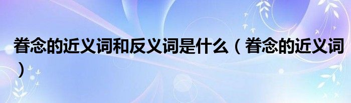 大家好,我是小科,我来为大家解答以上问题。眷念的近义词和反义词是什么,眷念的近义词很多人还不知道,现在让我们一起来看看吧!