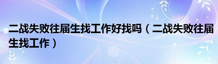 大家好,我是小科,我来为大家解答以上问题。二战失败往届生找工作好找吗,二战失败往届生找工作很多人还不知道,现在让我们一起来看看吧!