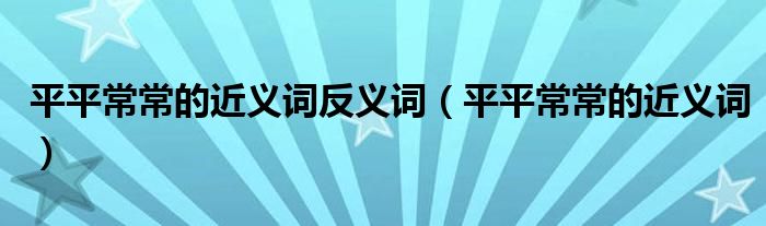 大家好,小晋来为大家解答以下问题,关于平平常常的近义词反义词,平平常常的近义词很多人还不知道,今天让我们一起来看看吧!