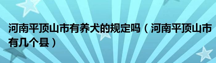 大家好,小夏来为大家讲解下。河南平顶山市有养犬的规定吗,河南平顶山市有几个县很多人还不知道,现在让我们一起来看看吧!