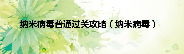 纳米病毒普通过关攻略(纳米病毒)