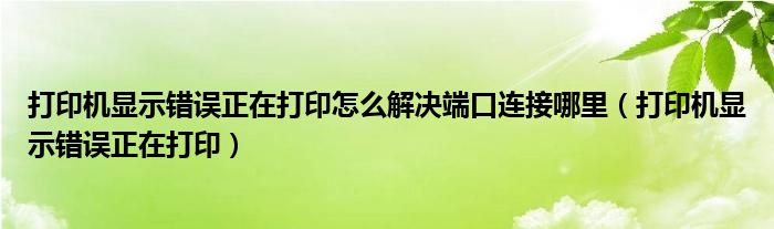 大家好,我是小科,我来为大家解答以上问题。打印机显示错误正在打印怎么解决端口连接哪里,打印机显示错误正在打印很多人还不知道,现在让我们一起来看看吧!