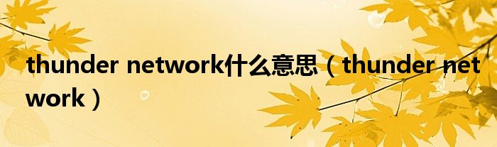 大家好,小联来为大家解答以上的问题。thunder network什么意思,thunder network这个很多人还不知道,现在让我们一起来看看吧!