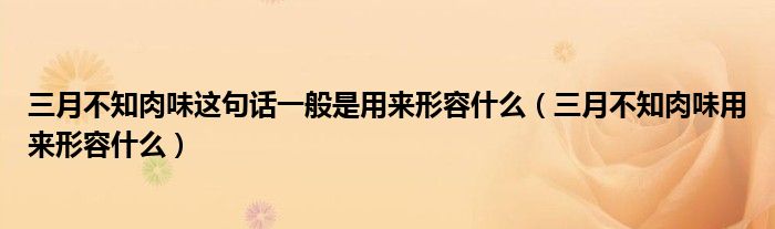 大家好,我是小科,我来为大家解答以上问题。三月不知肉味这句话一般是用来形容什么,三月不知肉味用来形容什么很多人还不知道,现在让我们一起来看看吧!