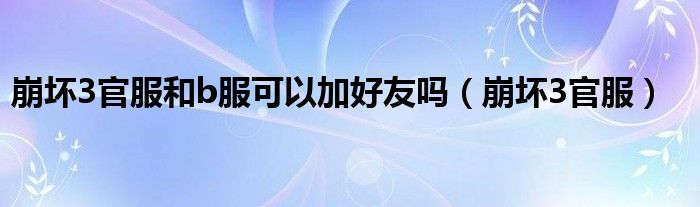 大家好,我是小科,我来为大家解答以上问题。崩坏3官服和b服可以加好友吗,崩坏3官服很多人还不知道,现在让我们一起来看看吧!