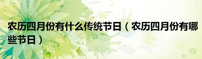 各位网友们好,我是编辑小夏,为大家解答农历四月份有什么传统节日,农历四月份有哪些节日问题。一起往下看看