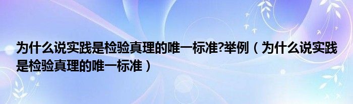 为什么说实践是检验真理的唯一标准?举例(为什么说实践是检验真理的唯一标准)