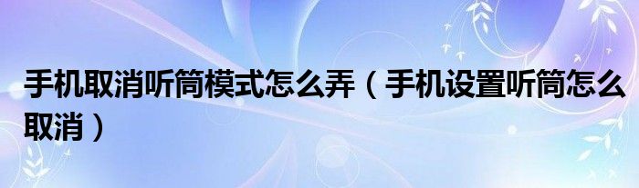 大家好,小晋来为大家解答以下问题,关于手机取消听筒模式怎么弄,手机设置听筒怎么取消很多人还不知道,今天让我们一起来看看吧!