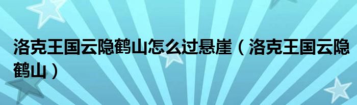 今天小饼为大家解答以下问题,关于洛克王国云隐鹤山怎么过悬崖,洛克王国云隐鹤山很多人还不知道,现在让我们一起来看看吧!