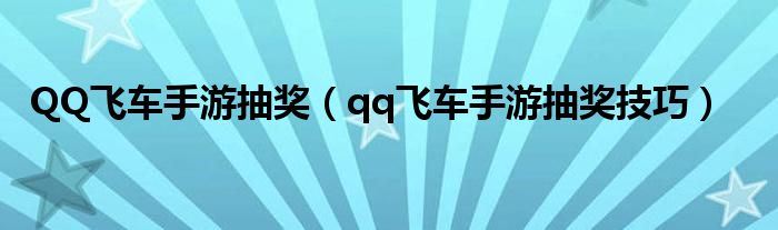 QQ飞车手游抽奖(qq飞车手游抽奖技巧)