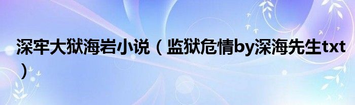 大家好,小晋来为大家解答以下问题,关于深牢大狱海岩小说,监狱危情by深海先生txt很多人还不知道,今天让我们一起来看看吧!