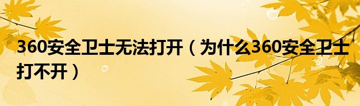 大家好,来宝来为大家解答以下问题,360安全卫士无法打开,为什么360安全卫士打不开很多人还不知道,今天让我们一起来看看吧!