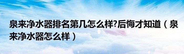 大家好,来宝来为大家解答以下问题,泉来净水器排名第几怎么样?后悔才知道,泉来净水器怎么样很多人还不知道,今天让我们一起来看看吧!
