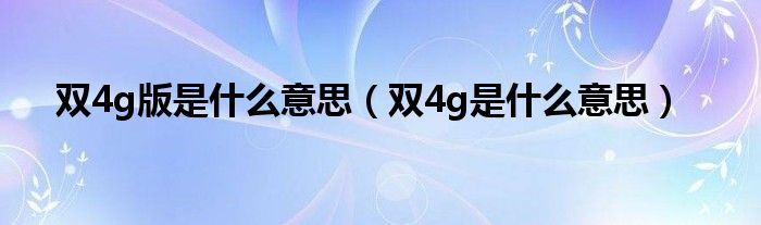 双4g版是什么意思(双4g是什么意思)