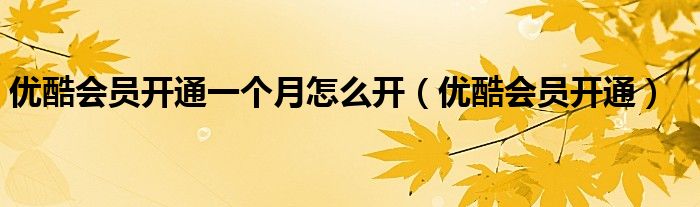 大家好,小晋来为大家解答以下问题,关于优酷会员开通一个月怎么开,优酷会员开通很多人还不知道,今天让我们一起来看看吧!