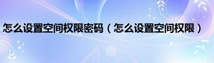 大家好,小晋来为大家解答以下问题,关于怎么设置空间权限密码,怎么设置空间权限很多人还不知道,今天让我们一起来看看吧!