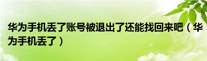 华为手机丢了账号被退出了还能找回来吧(华为手机丢了)