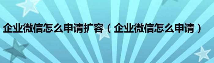 企业微信怎么申请扩容(企业微信怎么申请)